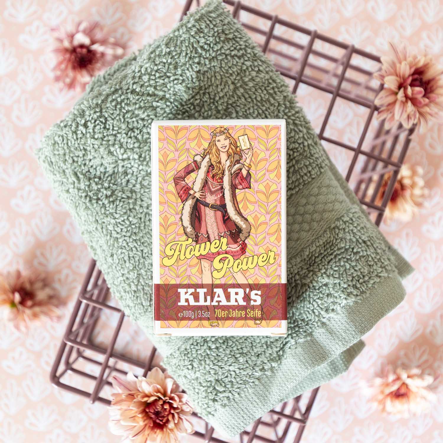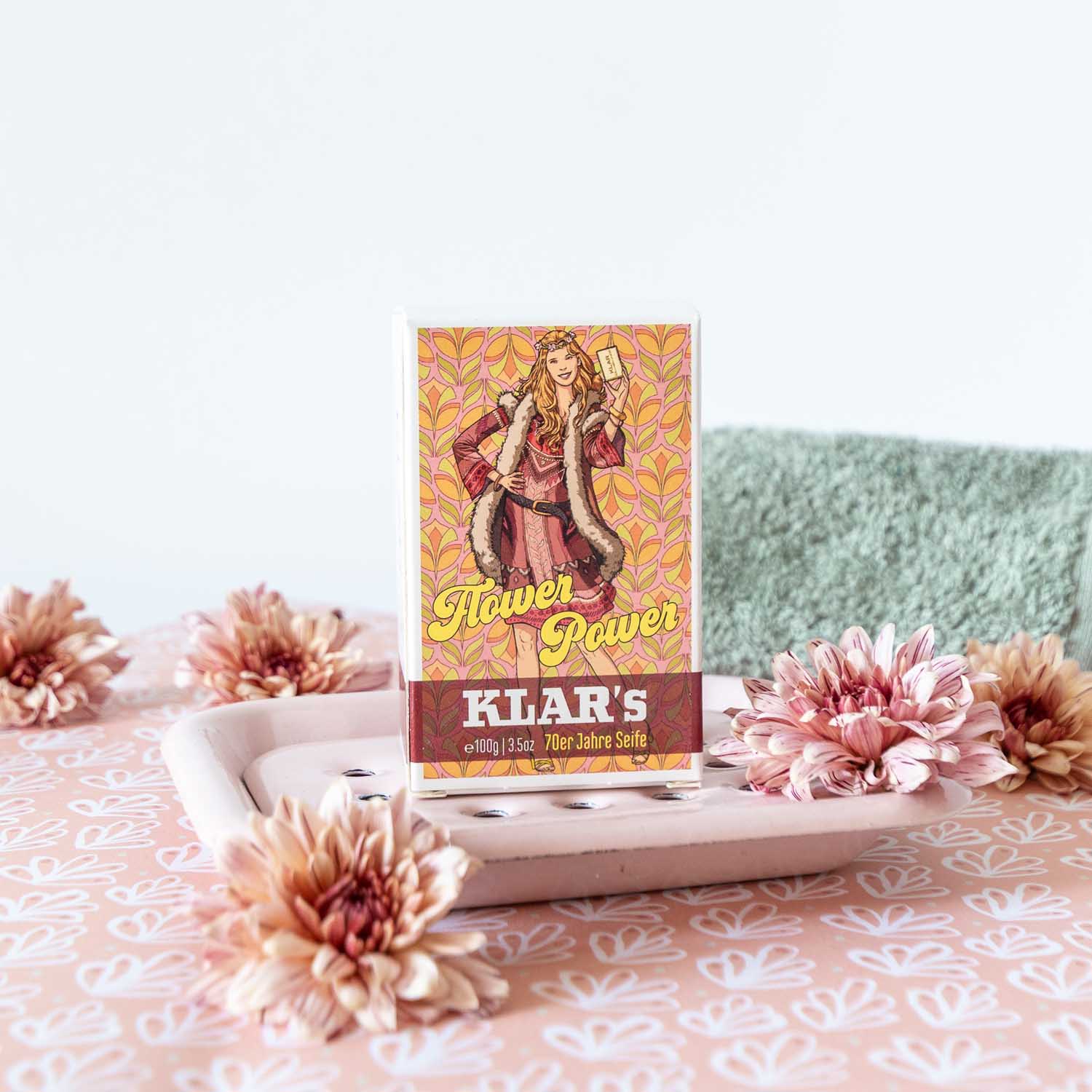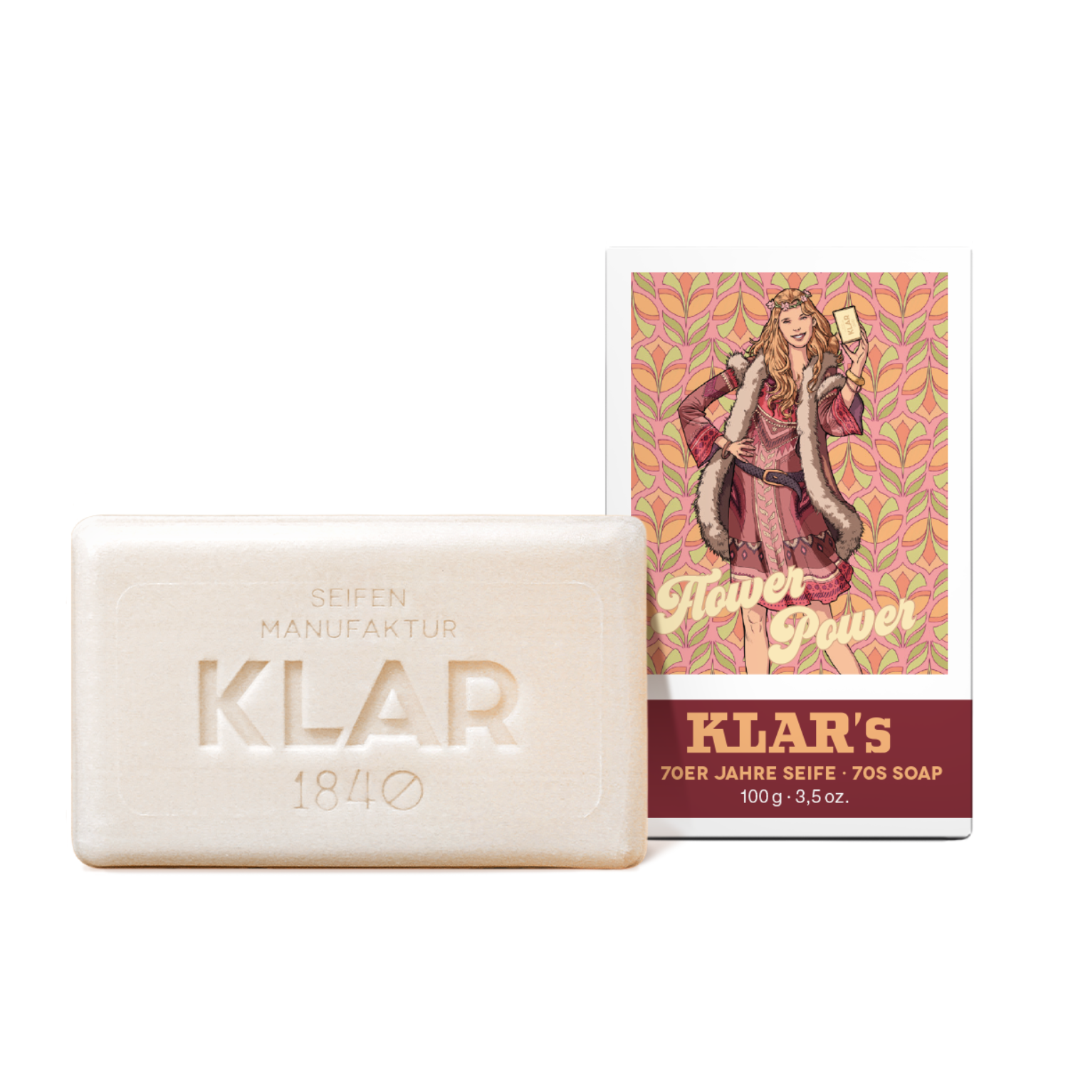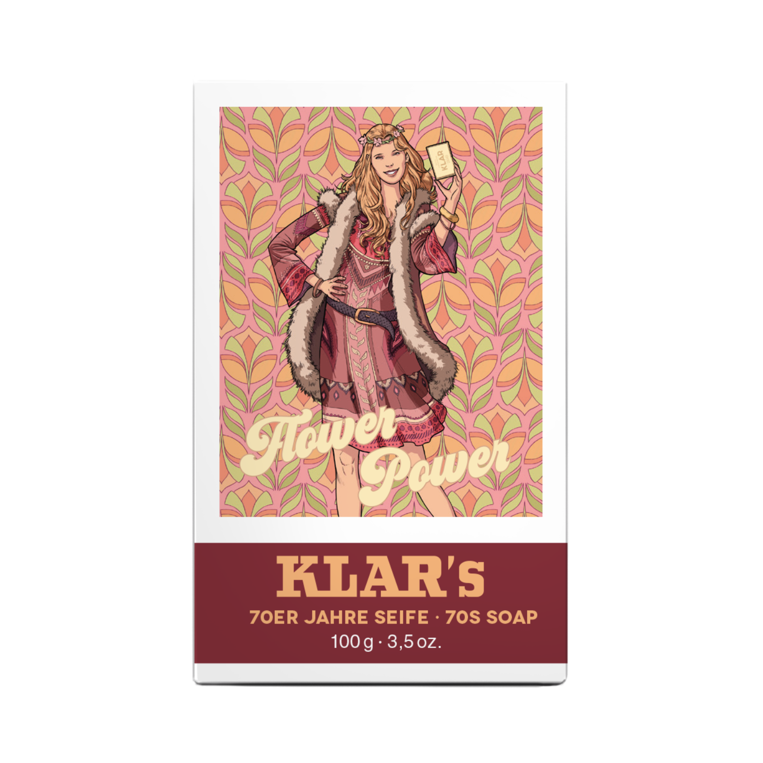Klar's 70er Jahre Retro Seife „Flower Power“ duftet auffallend süß, wie ein Kirschlolli. Egal ob Sie Hippie-Blumenmädchen oder Disco-Fan sind, diese Seife zaubert Seventies-Feeling in Ihr Badezimmer.