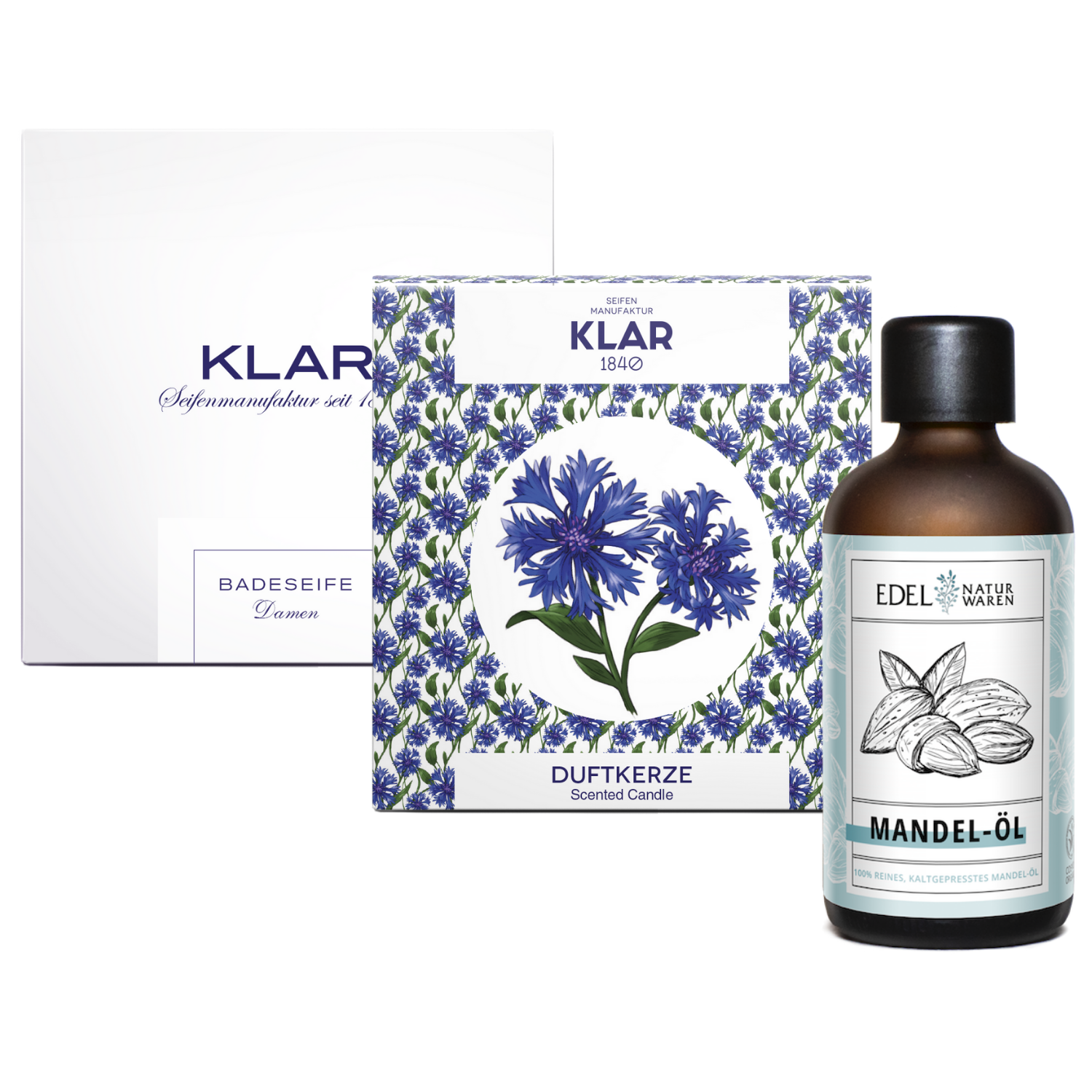Klar's Self-Care-Set ist die ideale Kombination aus den besten Produkten für ein entspannendes Bad und die darauffolgende Pflege. Mit der Badeseife und der aromatischen Duftkerze fällt es leicht sich zu entspannen und die Me-Time zu genießen. Nach dem Bad wird die Haut mit dem Mandelöl von Edel massiert und mit reichhaltiger Feuchtigkeit versorgt. Das Self-Care-Set ist auch ein wunderbares Geschenk für einen lieben Menschen oder für einen selbst.