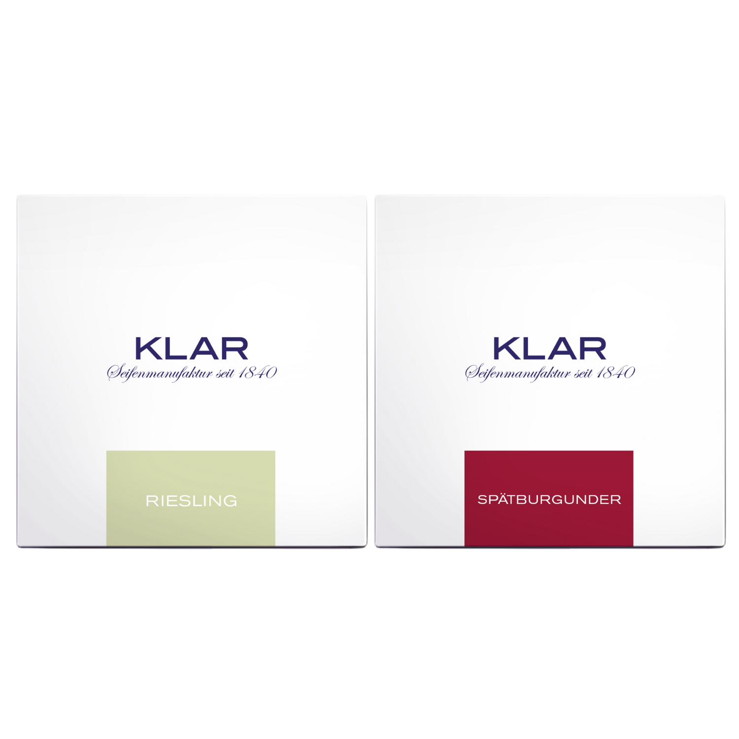 Klar’s Set mit je einer Rieslingseife und Spätburgunderseife ist ein tolles Präsent - nicht nur für Weinliebhaber. Unsere beiden Weinseifen sind auf Basis von echtem Riesling und Spätburgunder hergestellt. Neben dem spritzigen bis warmen Duft überzeugen die Seifen mit ihrer Wirkung. Das enthaltene Traubenkernextrakt hat eine antioxidative und regenerative Wirkung, strafft die Haut und schenkt ihr besonders viel Feuchtigkeit.