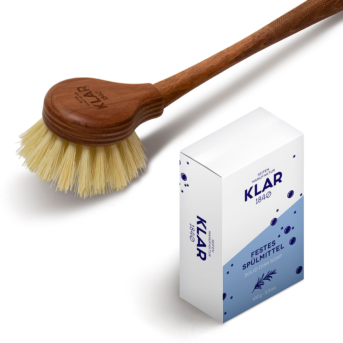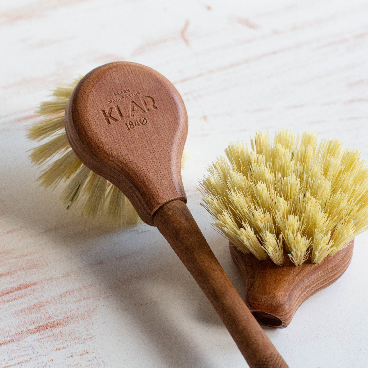 Klar’s Spülbürste ist durch das hochwertige Material und den austauschbaren Spülkopf besonders langlebig. Die widerstandsfähigen Borsten aus Tampicofibre sind hitzebeständig und entfernen auch die hartnäckigsten Verschmutzungen von Töpfen und Geschirr. Durch den hohen Härtegrad der Borsten ist beim Spülen kein hoher Druck notwendig.