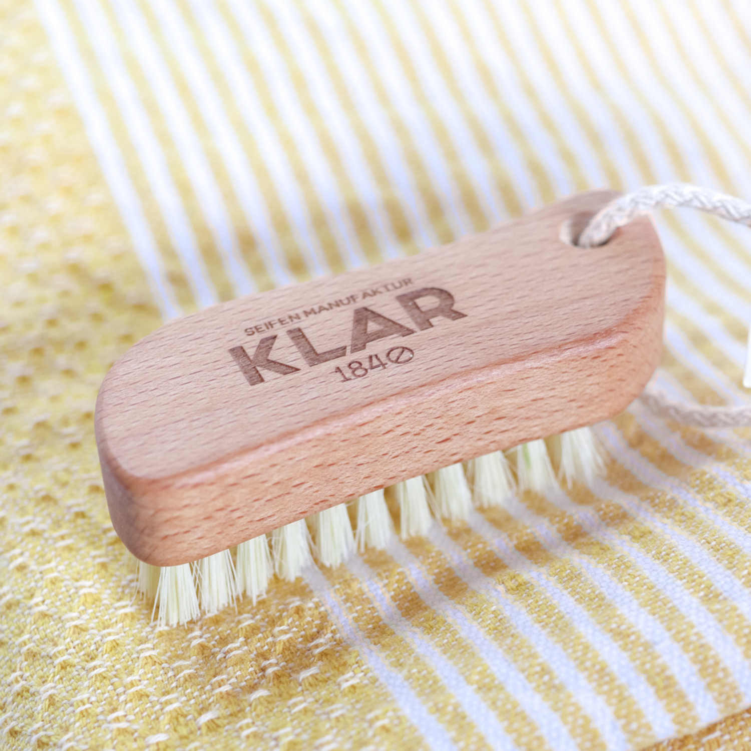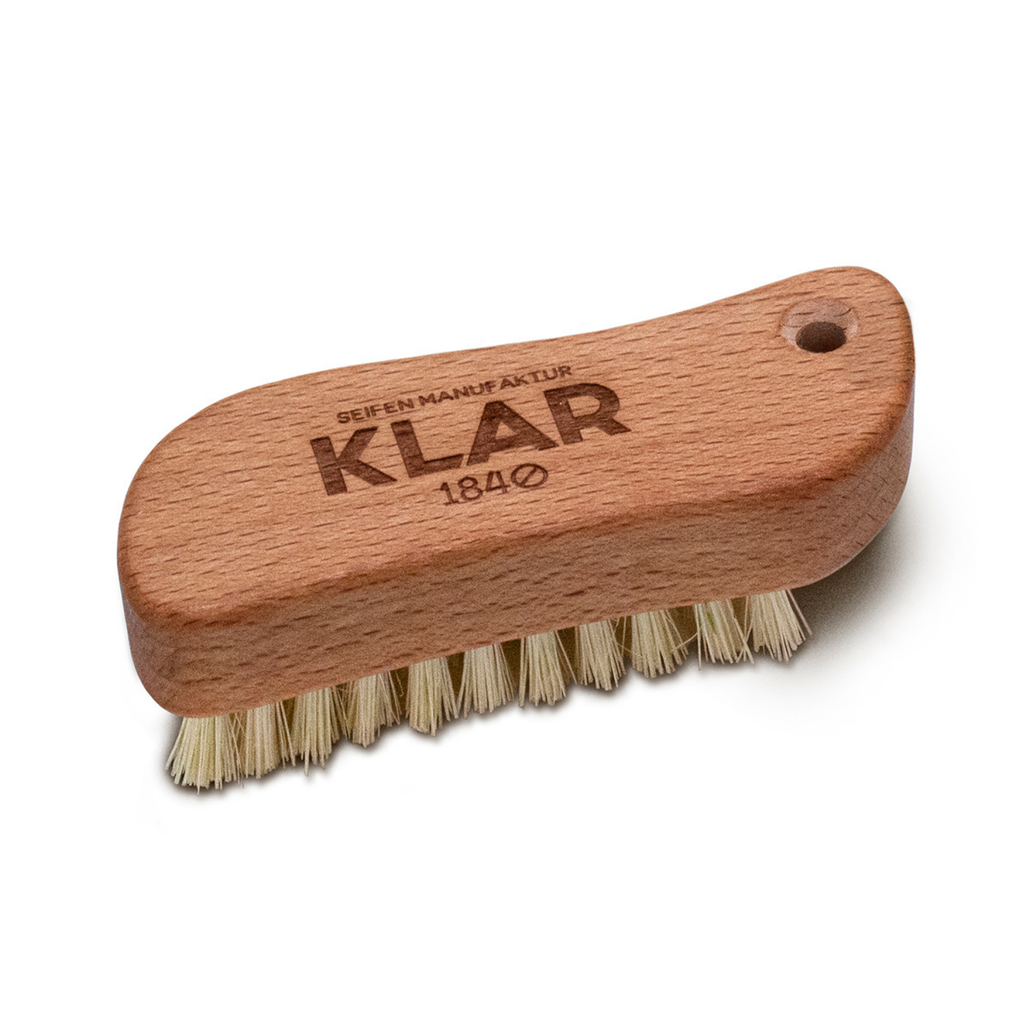 Klar’s Hand- und Nagelbürste entfernt besonders hartnäckige Verschmutzungen und reinigt mühelos Nagelbett und -haut. Durch den hohen Härtegrad der Borsten ist bei der Anwendung kein starker Druck notwendig. Die Bürste ist aus heimischem Buchenholz mit Borsten aus der Agavenpflanze gefertigt und somit zu 100% vegan und plastikfrei!