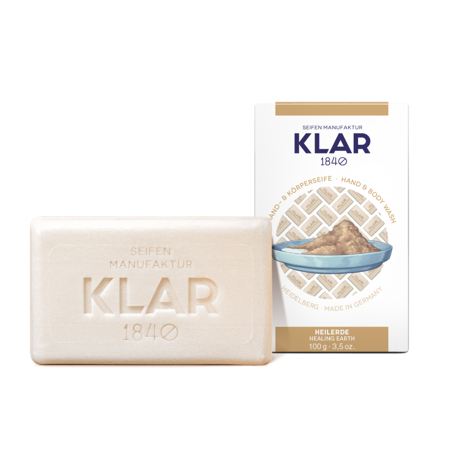 Klar´s Heilerdeseife mit naturreiner Heilerde bindet Fett und Bakterien auf der Haut. Daher ist sie sehr gut geeignet bei Hautproblemen wie Akne, Sonnenbrand und Insektenstichen. Da Heilerde die Wundheilung fördert, verschafft die Seife auch bei Neurodermitis und Ekzemen Linderung. Frei von künstlichen Duft- und Farbstoffen und auf pflanzlicher Basis hergestellt.