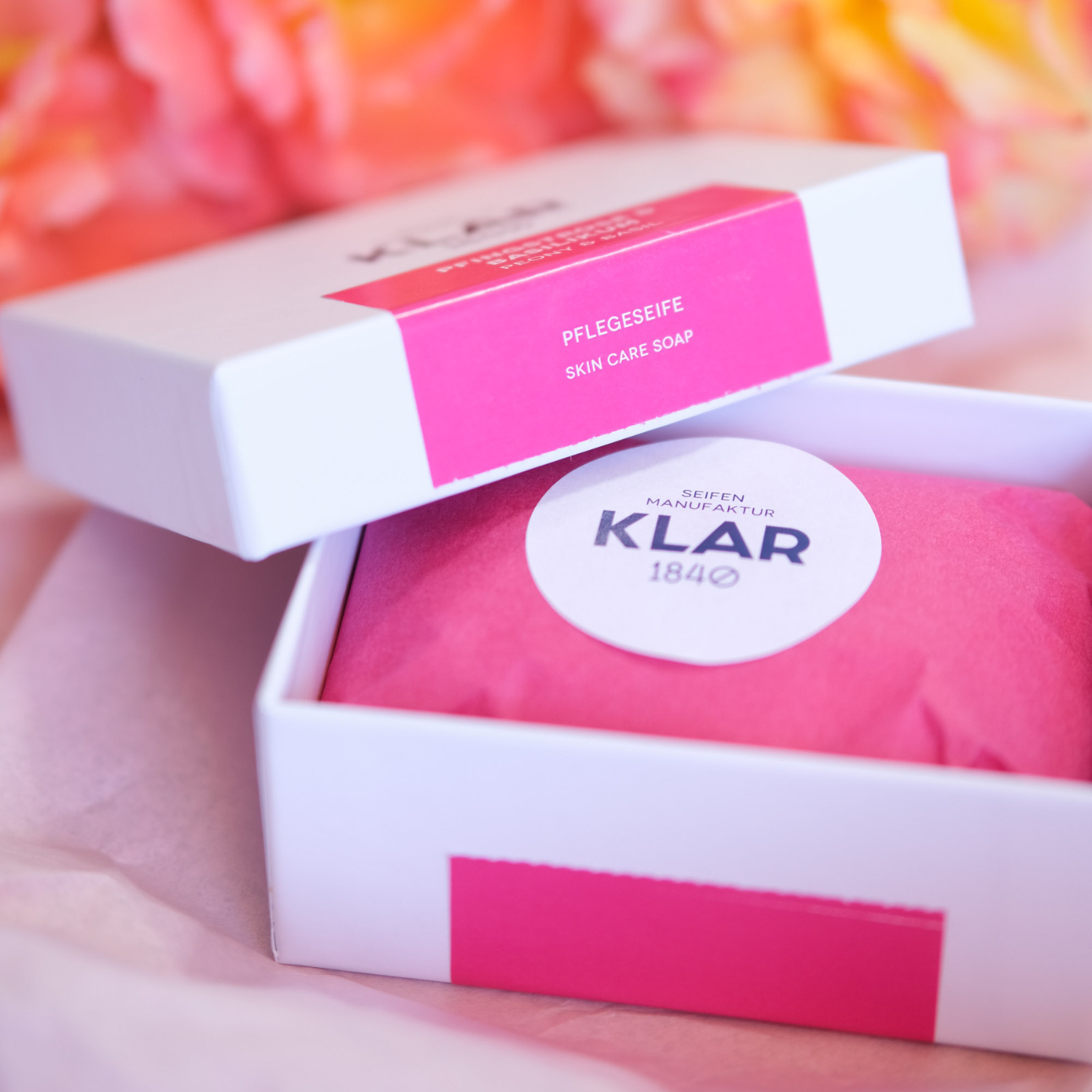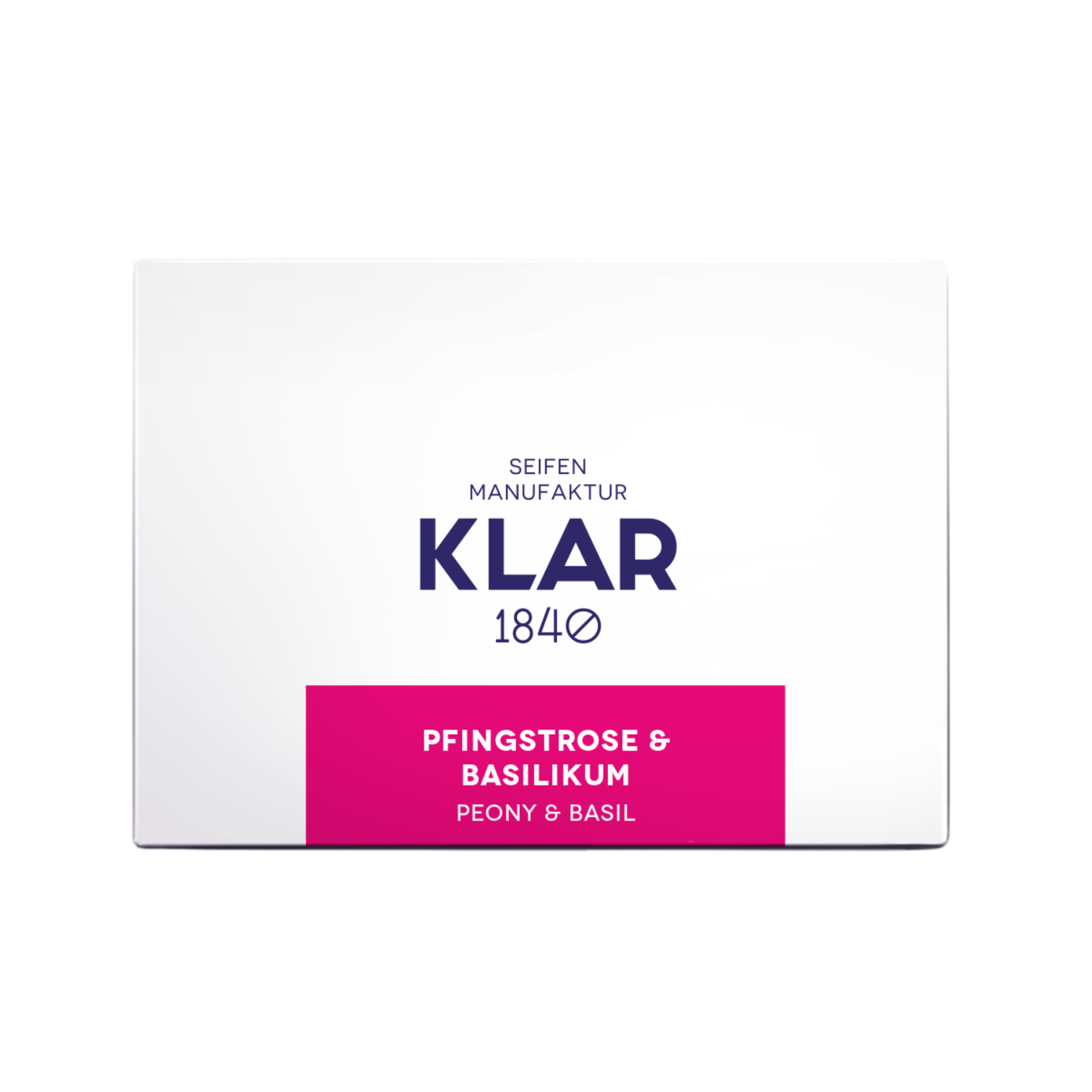 Klar‘s Pflegeseife Pfingstrose & Basilikum basiert auf einer der ältesten Rezepturen der Seifenmanufaktur. Die klassische Pfingstrosenseife wurde jetzt neu interpretiert und mit anregendem Basilikum verfeinert. Das Vitamin E des enthaltenen Rosenextraktes ist besonders für sensible und beanspruchte Haut eine Wohltat und pflegt sie zart und geschmeidig.