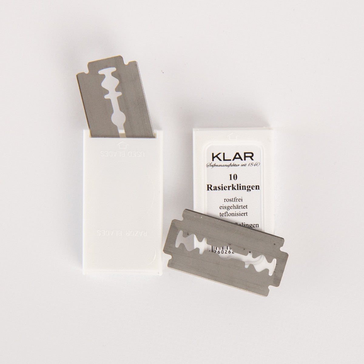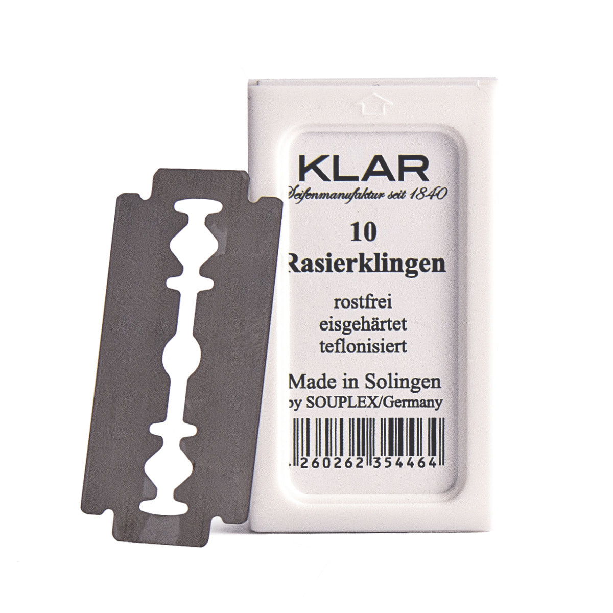 Klar’s Rasierklingen sind in Deutschland hergestellt, rostfrei, eisgehärtet und teflonisiert. Passend zum schwarzen Rasierhobel aus unserem Sortiment sorgen sie für eine absolut stoppelfreie und zugleich nachhaltige Rasur.