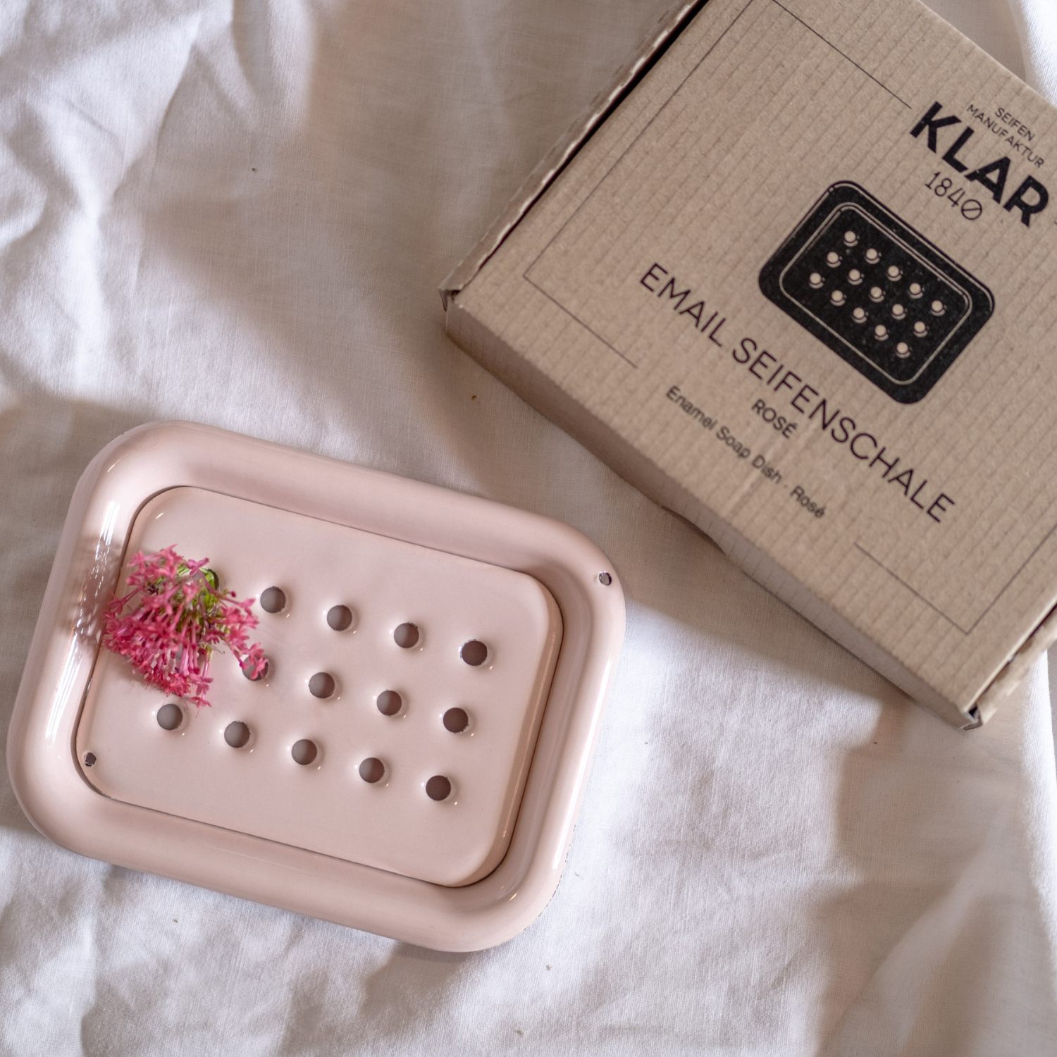 Klar's Seifenschale aus Email ist in einem zarten Rosé gehalten und ein hübscher Hingucker in Ihrem Badezimmer. Das widerstandsfähige Email ist ein besonders langlebiges Material. Dank des integrierten Abtropfgitters weicht die Seife nicht auf.