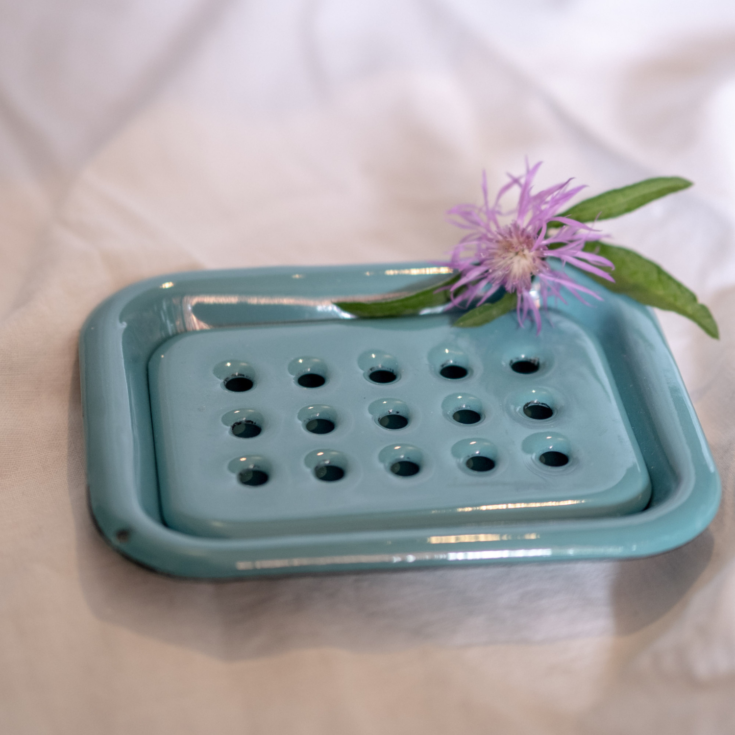 Pflegehinweis: Damit kein Flugrost entsteht, sollte die Seifenschale regelmäßig mit der groben Seite eines Schwammes und etwas Wasser gereinigt und anschließend abgetrocknet werden. Für die Spülmaschine ist Email nicht geeignet.
