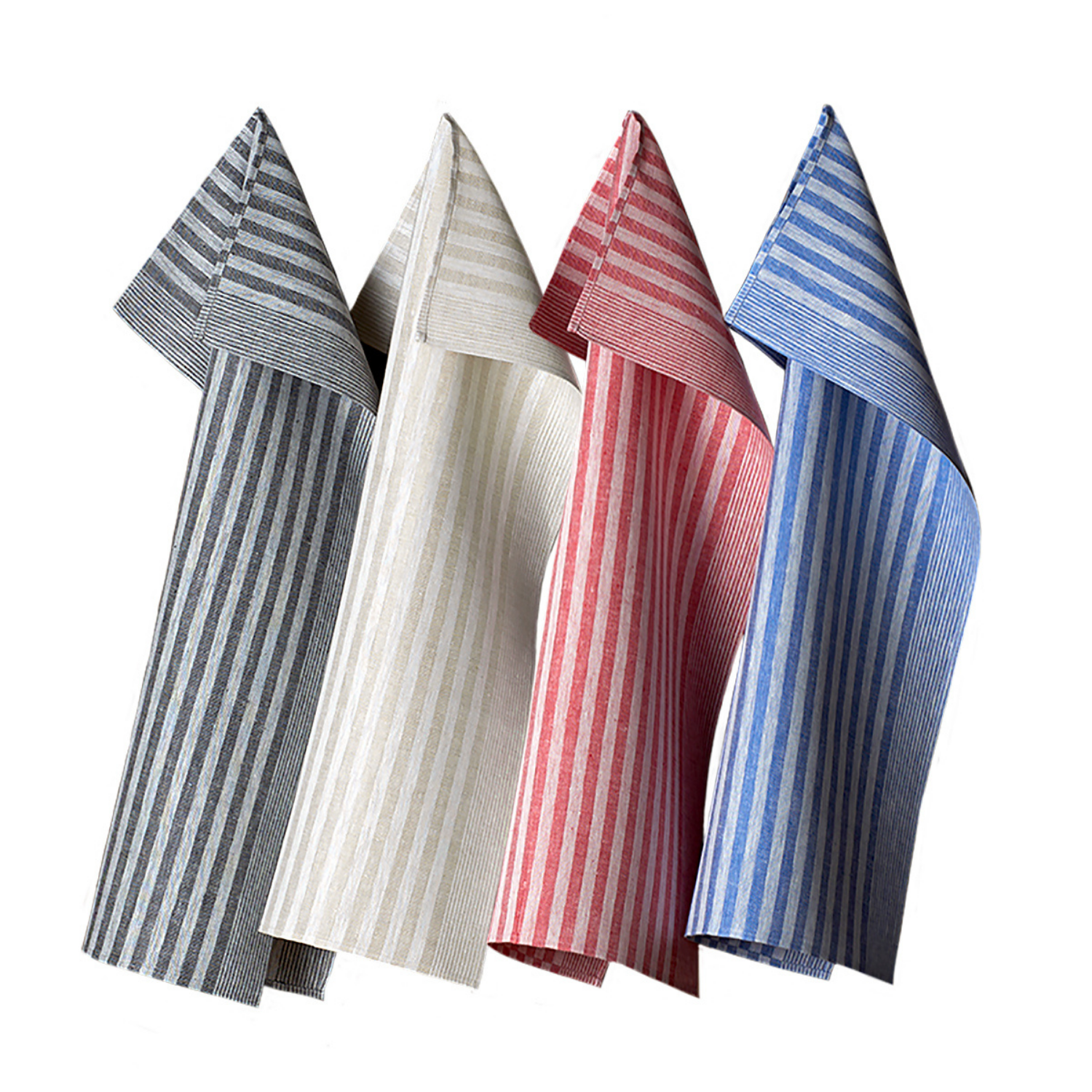 Die Geschirrtücher gibt es in folgenden Farben: schwarz, naturweiß/sand, rot und blau