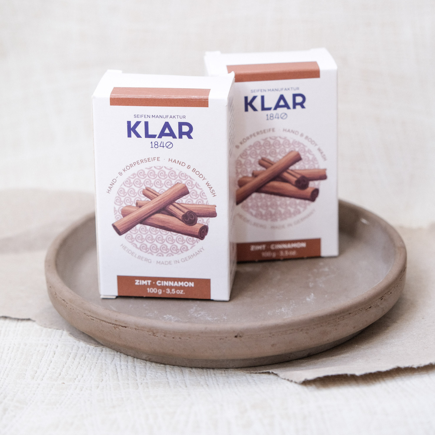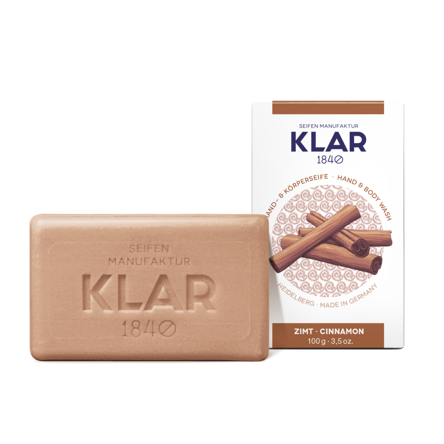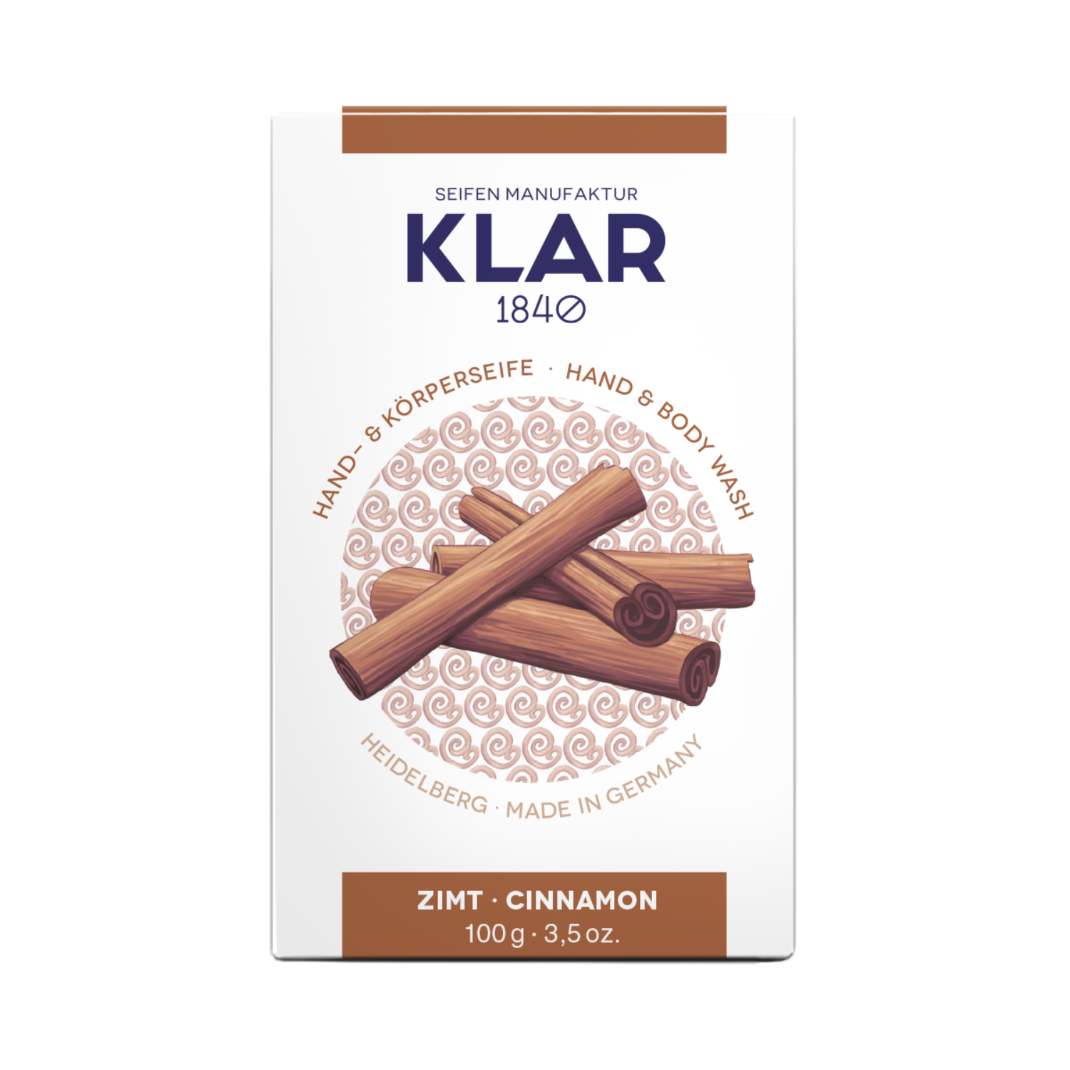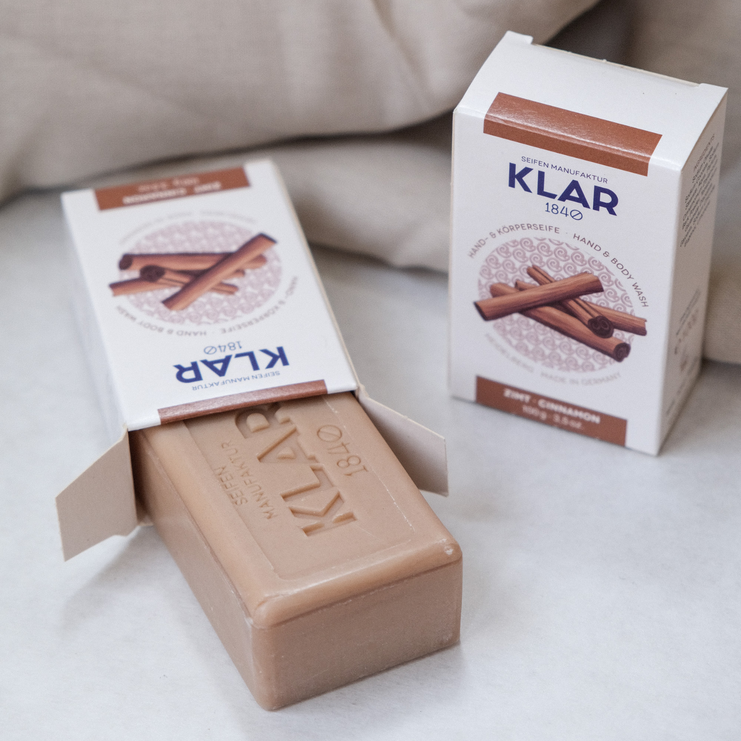 Klar’s Zimtseife verbreitet beim Waschen einen warmen und vertrauten Duft nach gemahlener Zimtrinde und weihnachtlichem Gebäck. Als eines der ältesten und kostbaren Gewürze der Menschheit regt Zimt die Produktion des Glückshormons Serotonin an und zaubert eine gemütliche Stimmung.